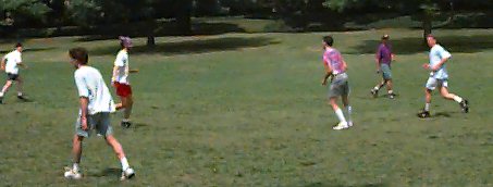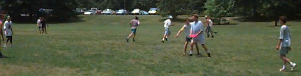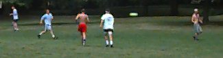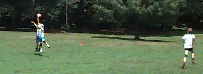 Believe it or not, these are just the good ones. I tried two methods of picture-taking. Shooting from the sidelines resulted in mainly far-away shots since the camera has no zoom. Clicking while playing resulted in out-of-focus, off-center shots, not to mention poor play on my part. Next time I'll try shooting from the field without playing.