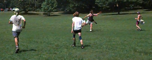 Believe it or not, these are just the good ones. I tried two methods of picture-taking. Shooting from the sidelines resulted in mainly far-away shots since the camera has no zoom. Clicking while playing resulted in out-of-focus, off-center shots, not to mention poor play on my part. Next time I'll try shooting from the field without playing.